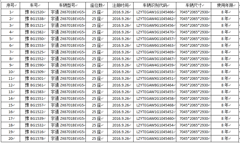 開(kāi)封交通運(yùn)輸(集團(tuán))有限公司現(xiàn)有宇通牌純電動(dòng)公交客車(chē)20臺(tái),車(chē)輛入戶(hù)日期:2016年9月,其中汽車(chē)北站(18臺(tái)),中心站(2臺(tái)),主要用于市內(nèi)接送業(yè)務(wù),因車(chē)輛運(yùn)營(yíng)年限較長(zhǎng),車(chē)輛動(dòng)力電池組老化,續(xù)航里程衰減,不能滿(mǎn)足正常安全生產(chǎn)使用的要求。為了確保20臺(tái)車(chē)輛的安全運(yùn)營(yíng),經(jīng)集團(tuán)公司研究,決定將宇通牌20臺(tái)純電動(dòng)公交客車(chē)的電池統(tǒng)一更換,現(xiàn)面向社會(huì)進(jìn)行公示,邀請(qǐng)符合國(guó)家標(biāo)準(zhǔn)、資質(zhì)達(dá)標(biāo)的電池廠家或企業(yè)參與競(jìng)標(biāo)。